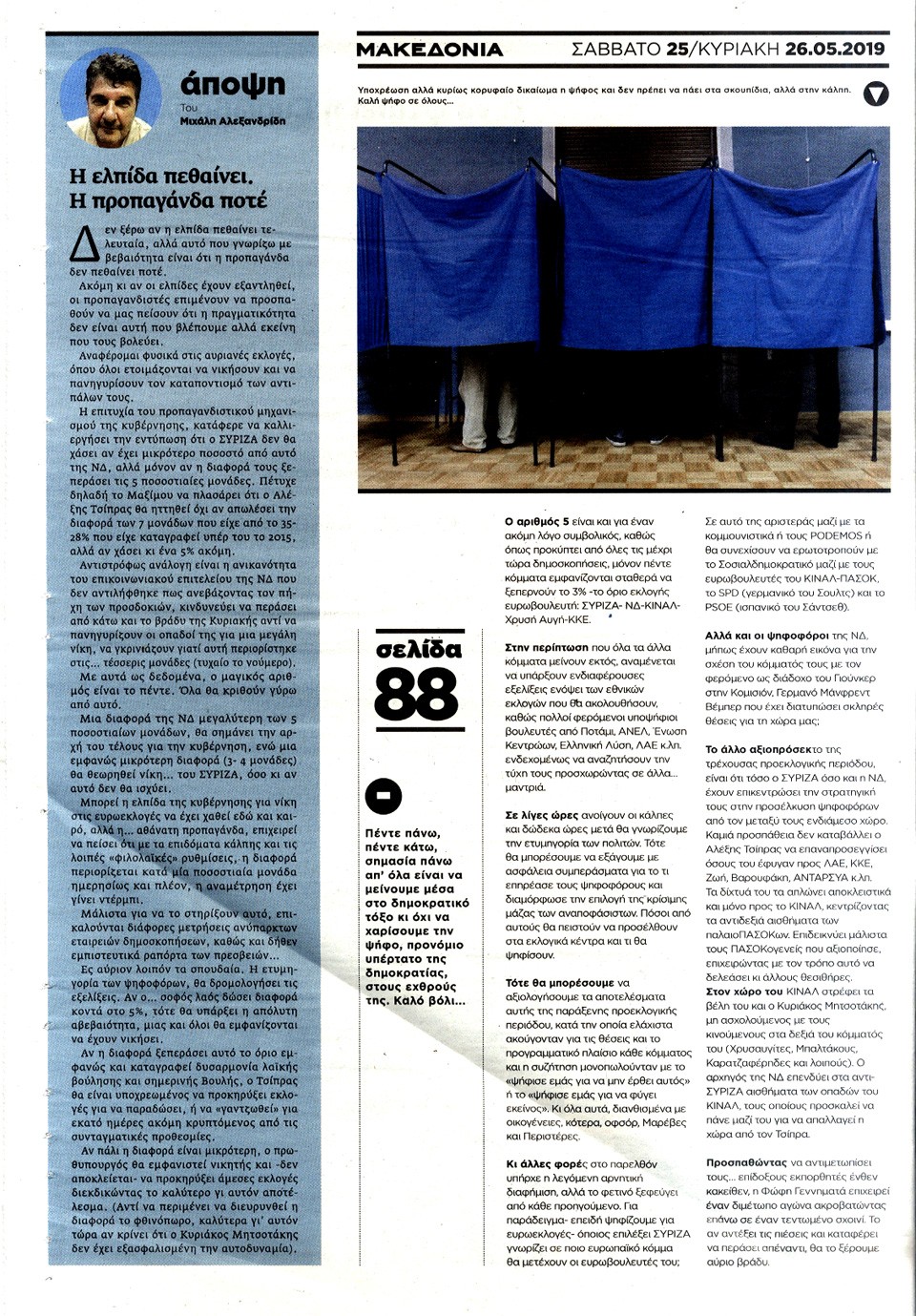 ΜΑΚΕΔΟΝΙΑ ΤΗΣ ΚΥΡΙΑΚΗΣ - 25 Μαΐου 2019
