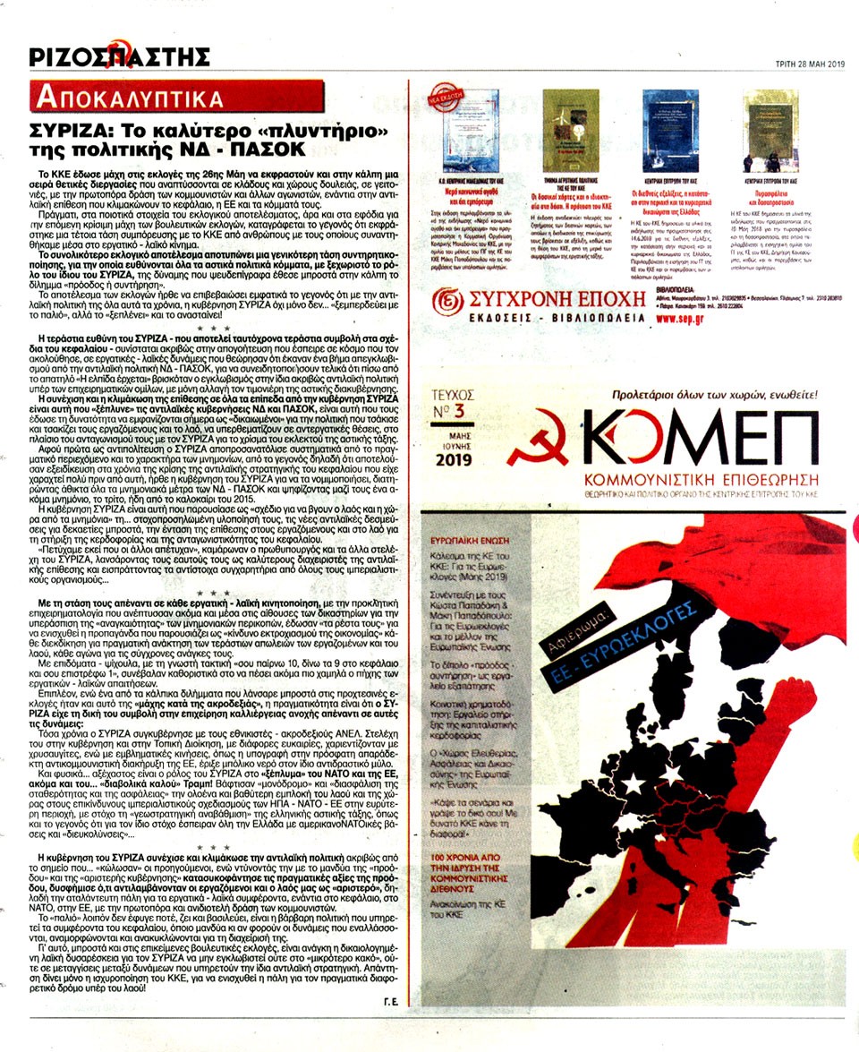 ΡΙΖΟΣΠΑΣΤΗΣ - 28 Μαΐου 2019