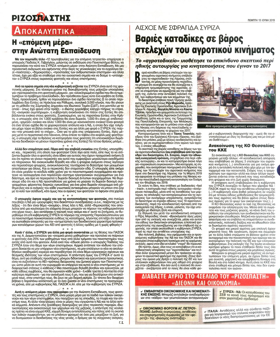 ΡΙΖΟΣΠΑΣΤΗΣ - 13 Ιουνίου 2019