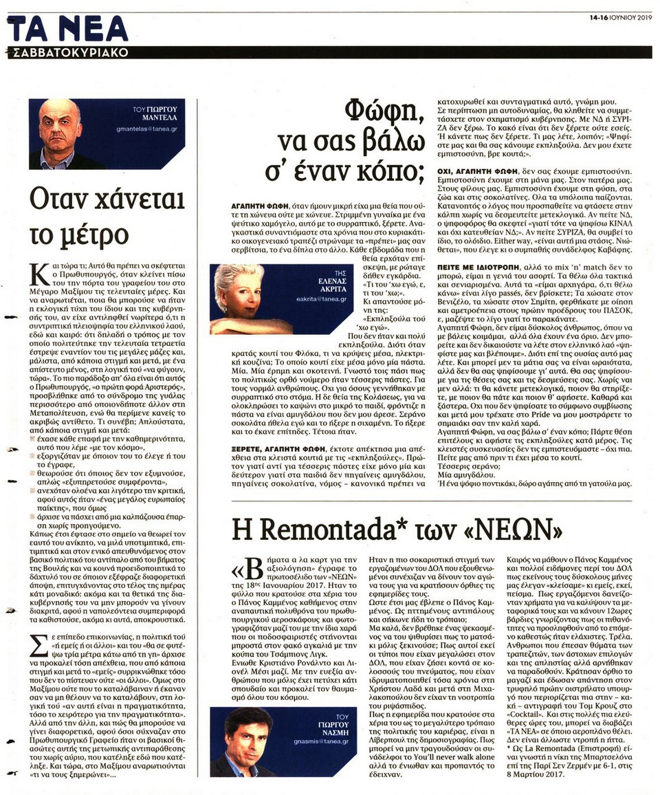 ΤΑ ΝΕΑ - 14 Ιουνίου 2019