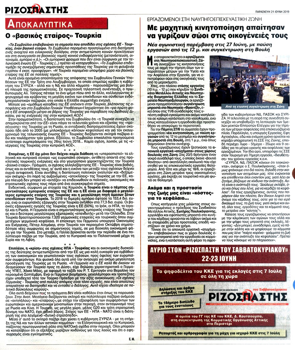 ΡΙΖΟΣΠΑΣΤΗΣ - 21 Ιουνίου 2019