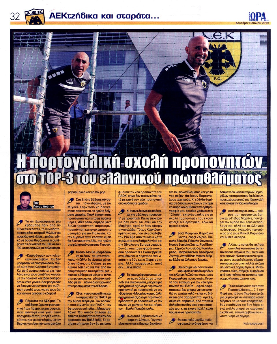ΑΘΛΗΤΙΚΗ ΩΡΑ ΤΩΝ ΣΠΟΡ - 1 Ιουλίου 2019