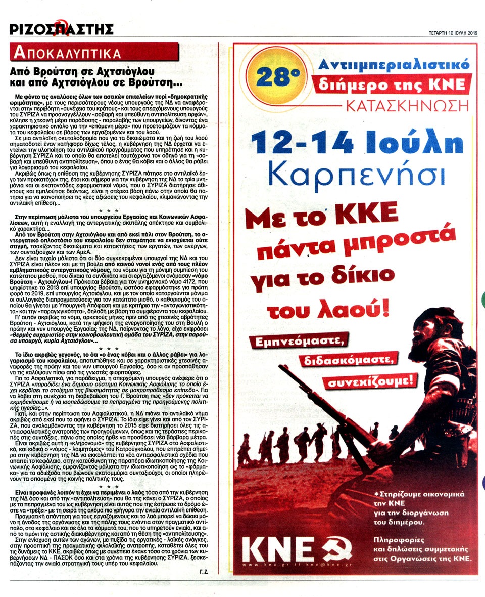 ΡΙΖΟΣΠΑΣΤΗΣ - 10 Ιουλίου 2019