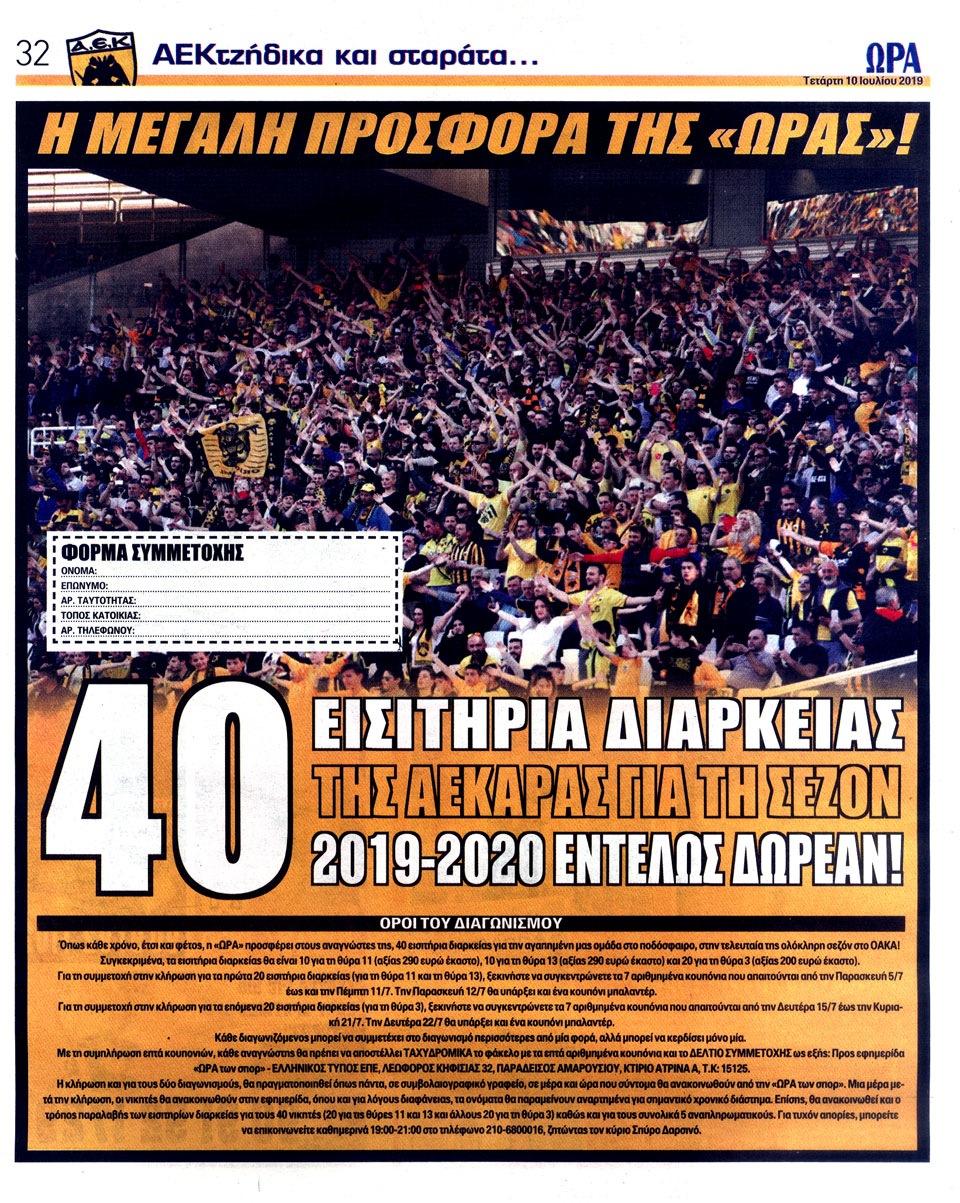 ΑΘΛΗΤΙΚΗ ΩΡΑ ΤΩΝ ΣΠΟΡ - 10 Ιουλίου 2019