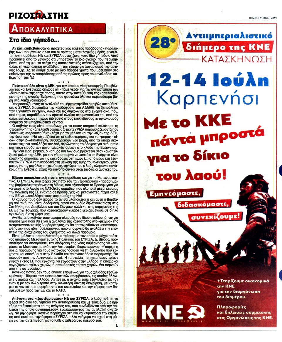 ΡΙΖΟΣΠΑΣΤΗΣ - 11 Ιουλίου 2019