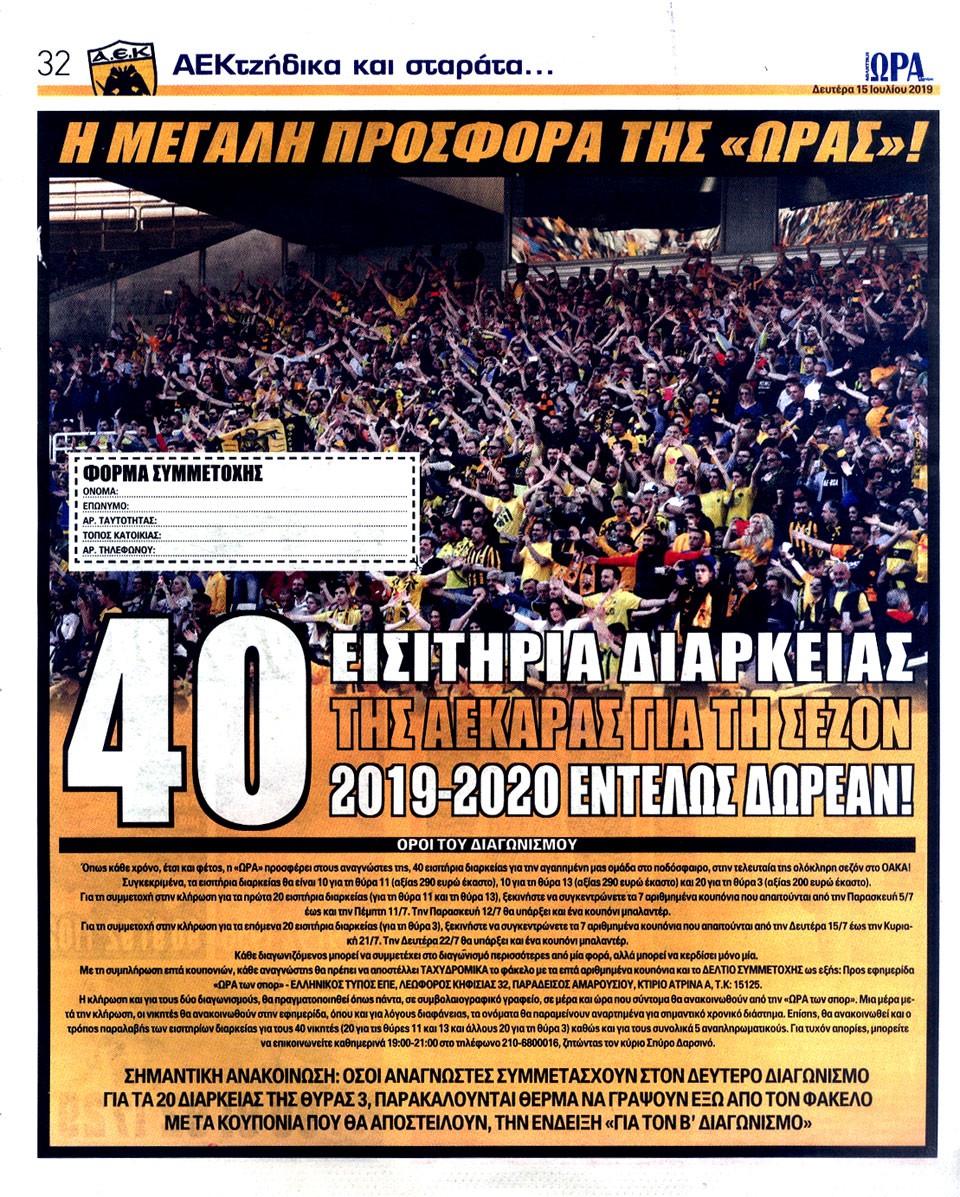 ΑΘΛΗΤΙΚΗ ΩΡΑ ΤΩΝ ΣΠΟΡ - 15 Ιουλίου 2019
