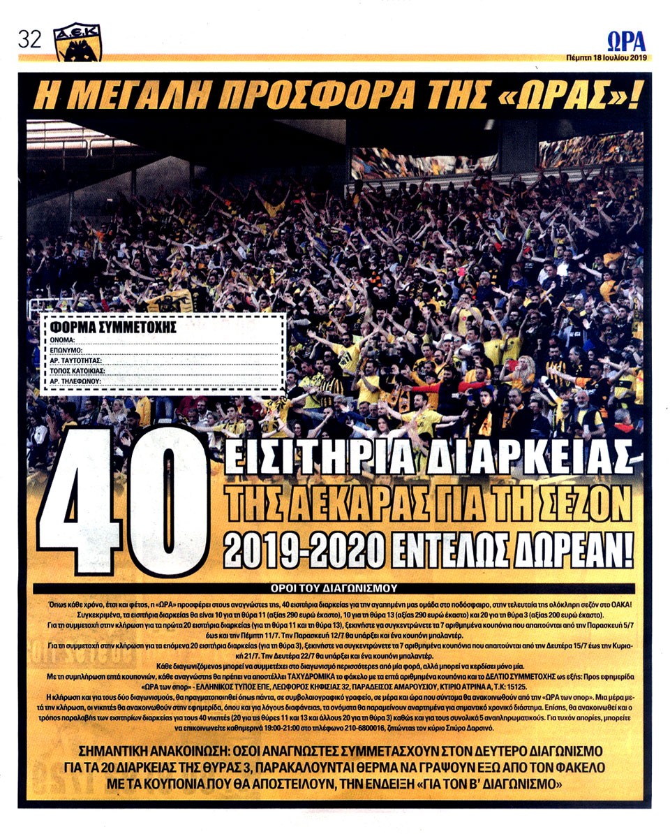 ΑΘΛΗΤΙΚΗ ΩΡΑ ΤΩΝ ΣΠΟΡ - 18 Ιουλίου 2019