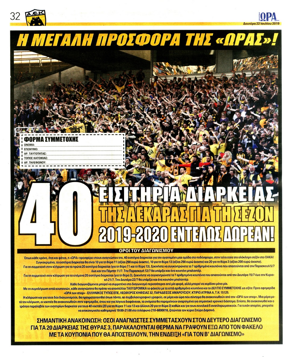 ΑΘΛΗΤΙΚΗ ΩΡΑ ΤΩΝ ΣΠΟΡ - 22 Ιουλίου 2019