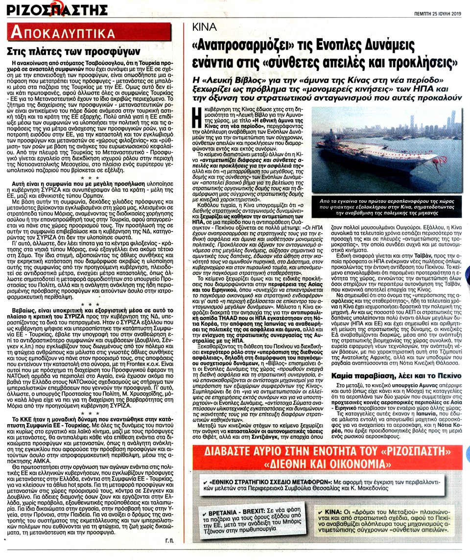 ΡΙΖΟΣΠΑΣΤΗΣ - 25 Ιουλίου 2019