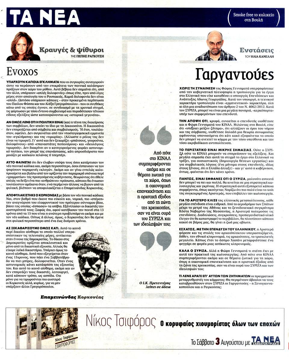 ΤΑ ΝΕΑ - 1 Αυγούστου 2019