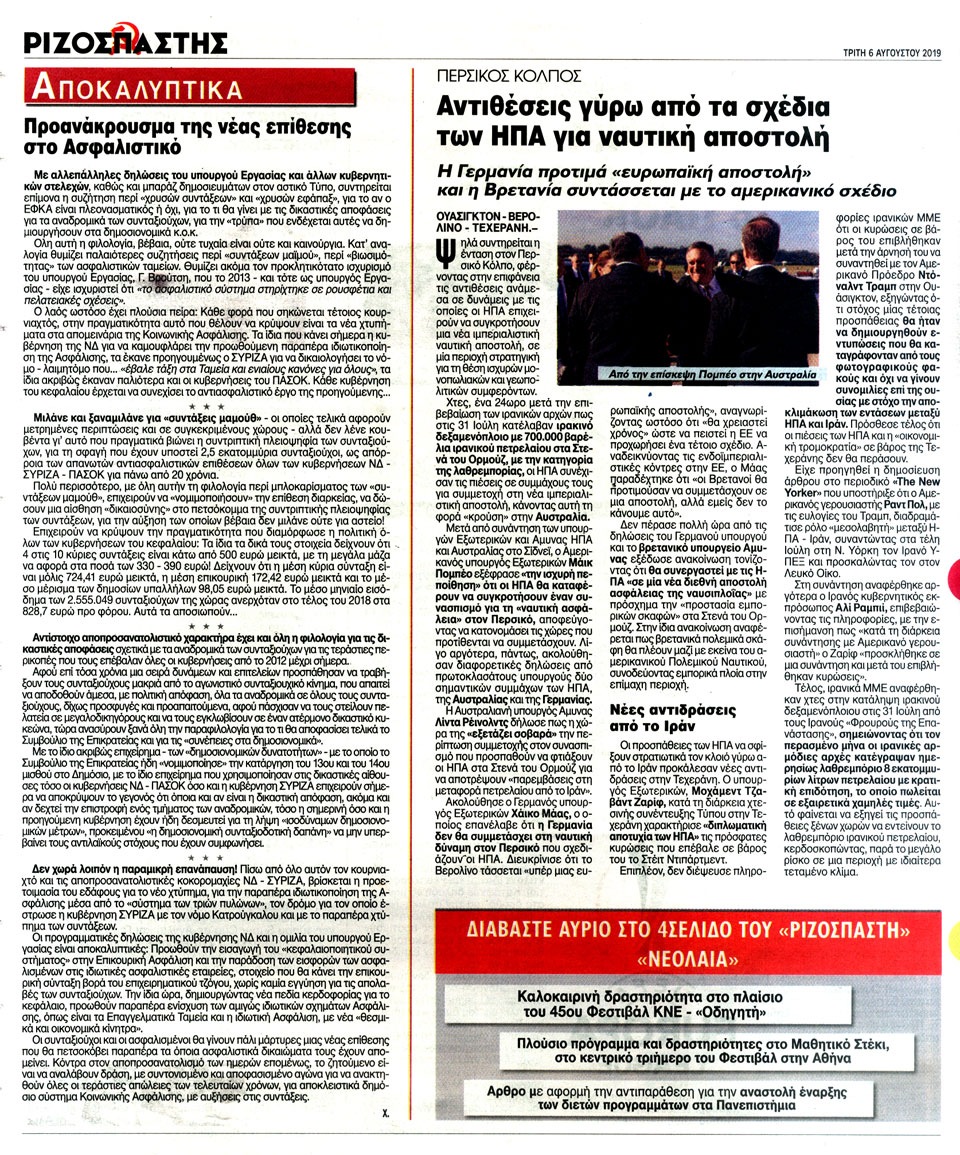 ΡΙΖΟΣΠΑΣΤΗΣ - 6 Αυγούστου 2019