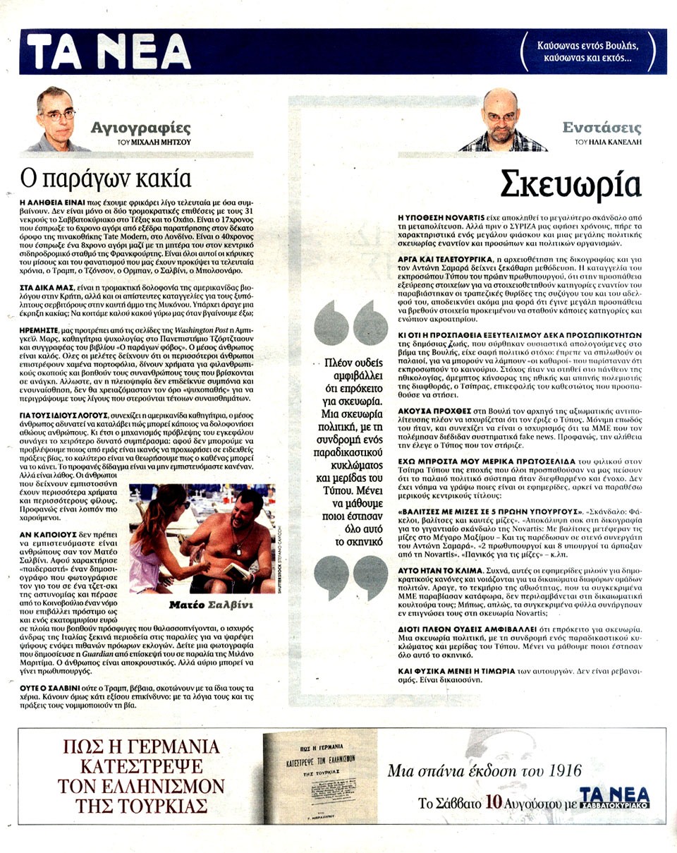 ΤΑ ΝΕΑ - 8 Αυγούστου 2019