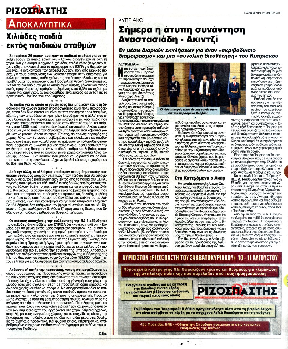 ΡΙΖΟΣΠΑΣΤΗΣ - 9 Αυγούστου 2019