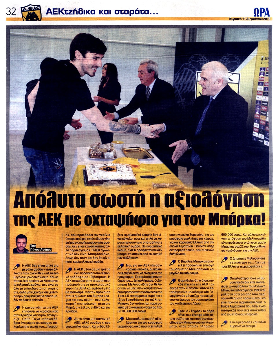 ΑΘΛΗΤΙΚΗ ΩΡΑ ΤΩΝ ΣΠΟΡ - 11 Αυγούστου 2019