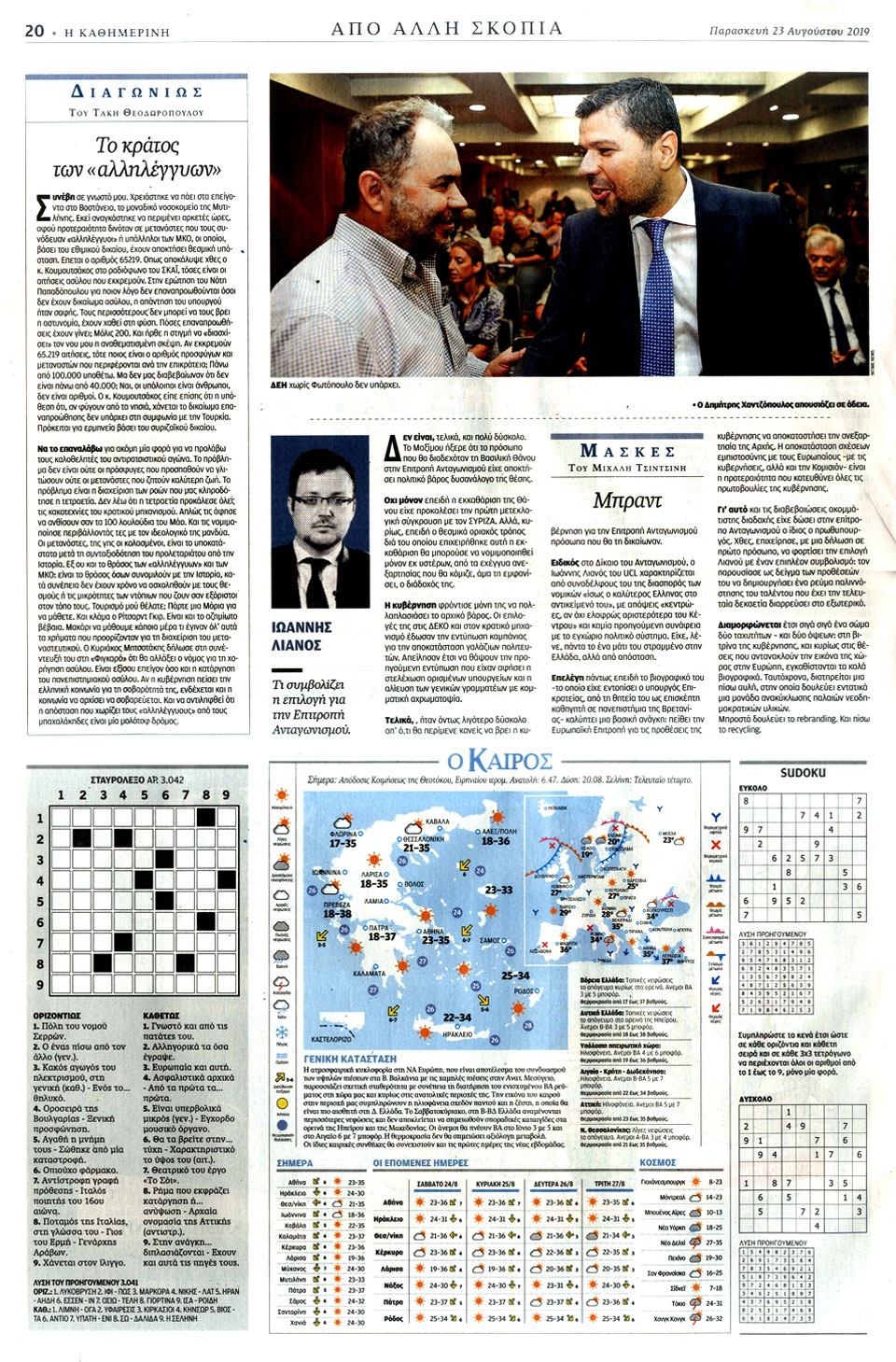 ΚΑΘΗΜΕΡΙΝΗ - 23 Αυγούστου 2019