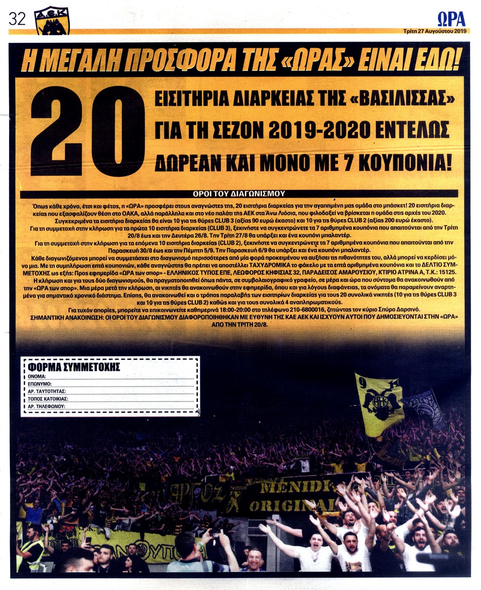 ΑΘΛΗΤΙΚΗ ΩΡΑ ΤΩΝ ΣΠΟΡ - 27 Αυγούστου 2019