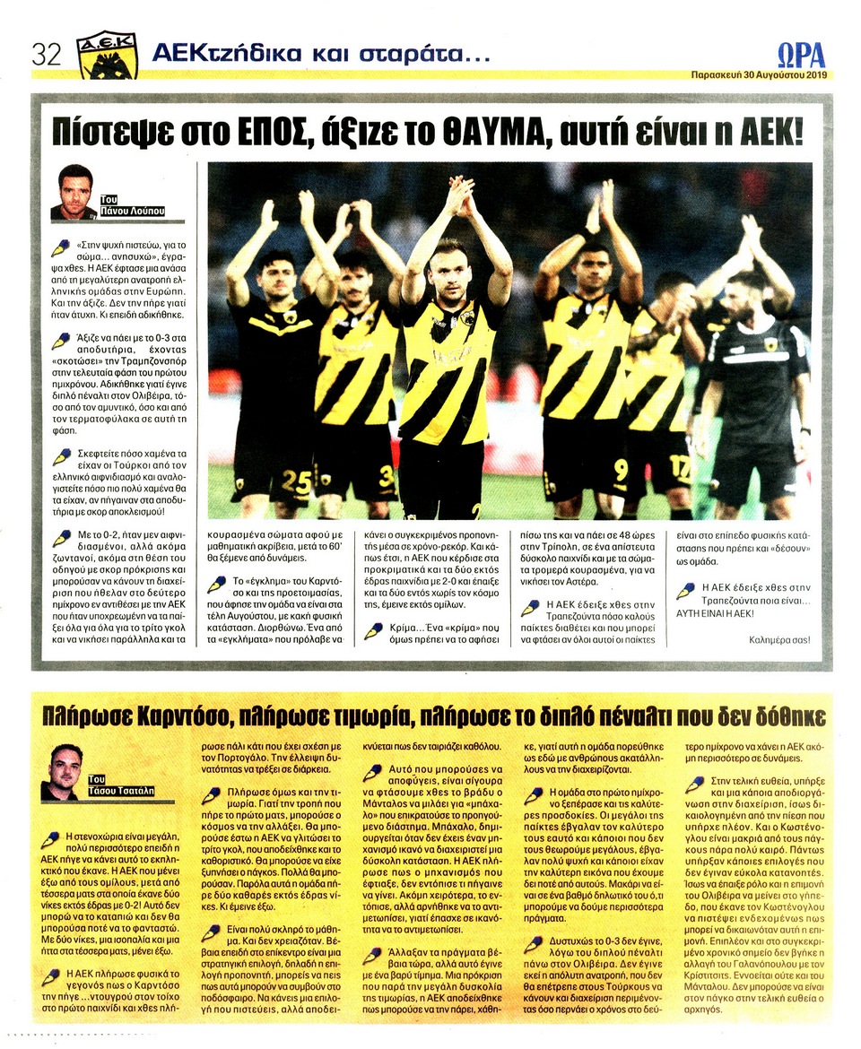 ΑΘΛΗΤΙΚΗ ΩΡΑ ΤΩΝ ΣΠΟΡ - 30 Αυγούστου 2019