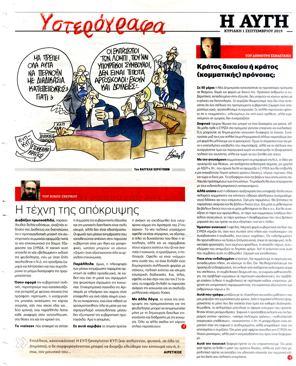 Η ΑΥΓΗ ΤΗΣ ΚΥΡΙΑΚΗΣ - 1 Σεπτεμβρίου 2019