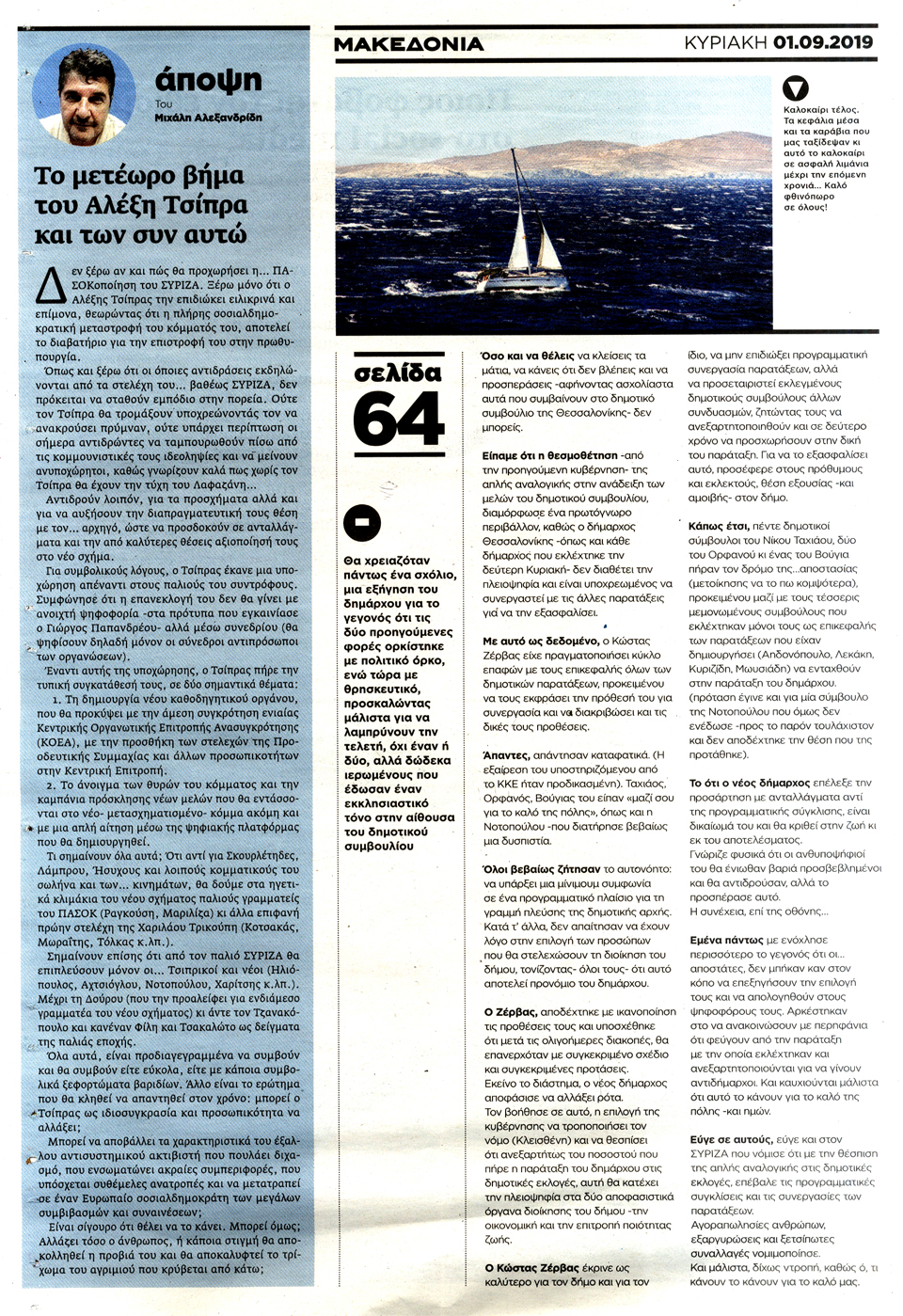 ΜΑΚΕΔΟΝΙΑ ΤΗΣ ΚΥΡΙΑΚΗΣ - 1 Σεπτεμβρίου 2019