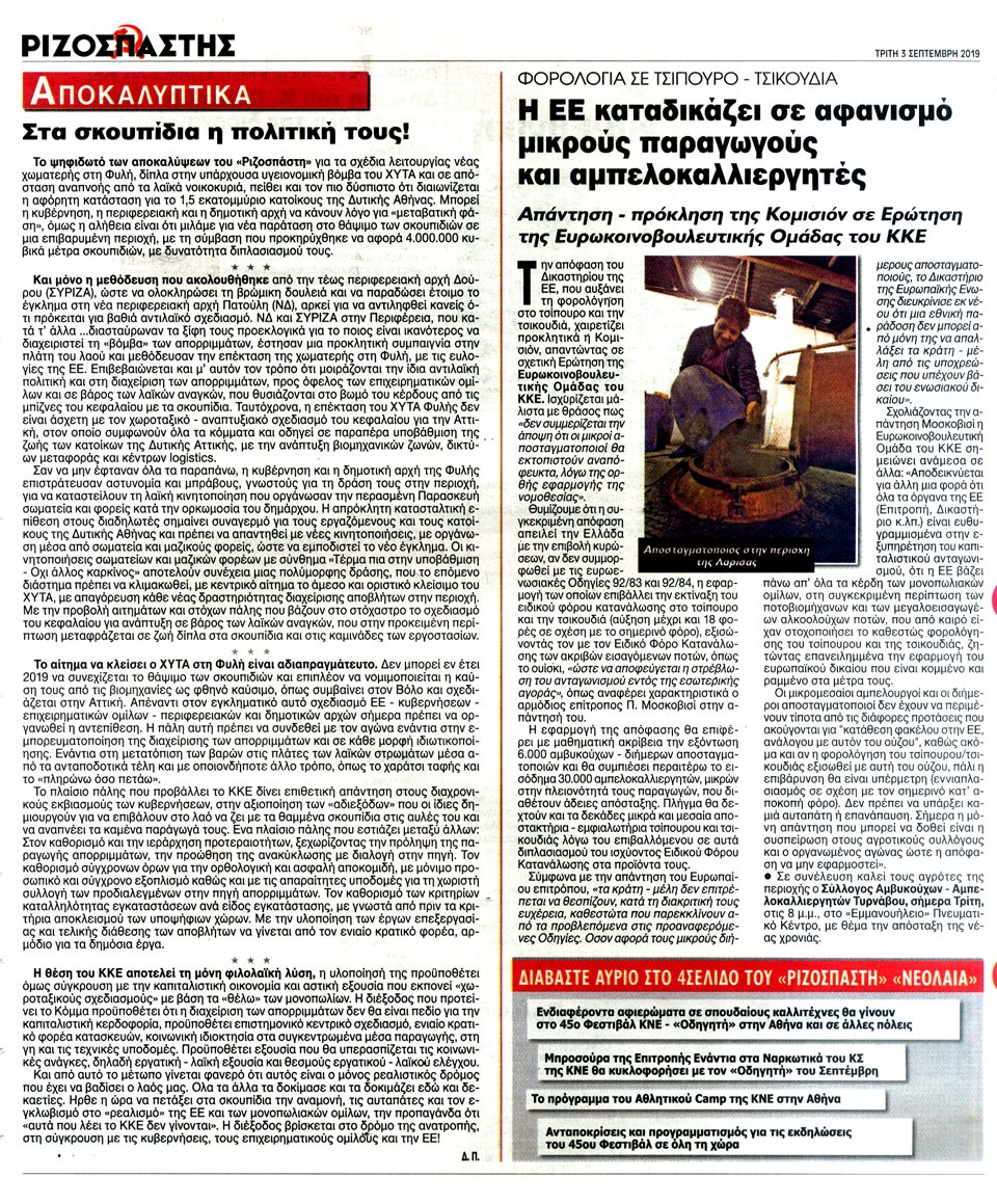 ΡΙΖΟΣΠΑΣΤΗΣ - 3 Σεπτεμβρίου 2019