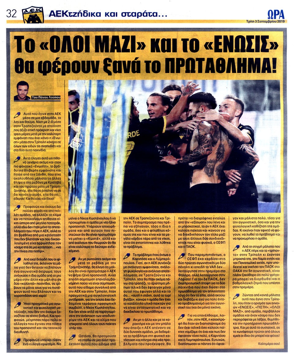 ΑΘΛΗΤΙΚΗ ΩΡΑ ΤΩΝ ΣΠΟΡ - 3 Σεπτεμβρίου 2019