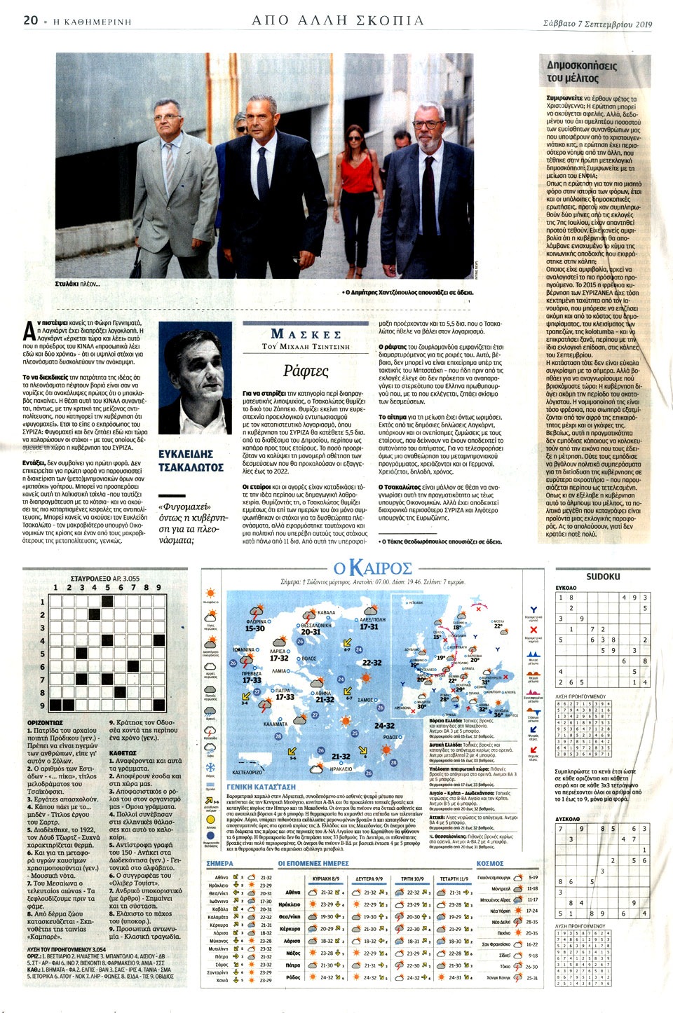 ΚΑΘΗΜΕΡΙΝΗ - 7 Σεπτεμβρίου 2019