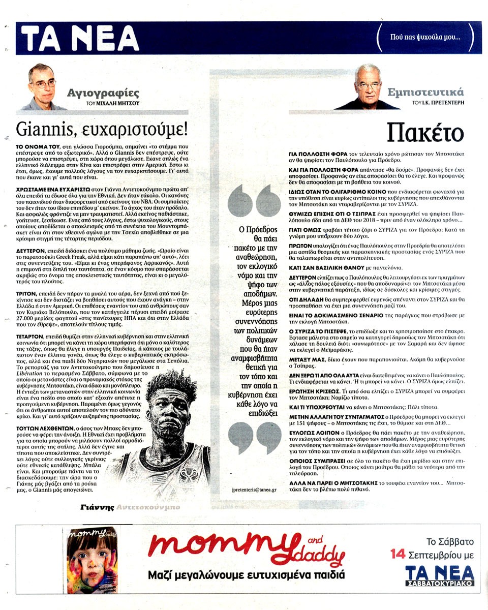 ΤΑ ΝΕΑ - 10 Σεπτεμβρίου 2019