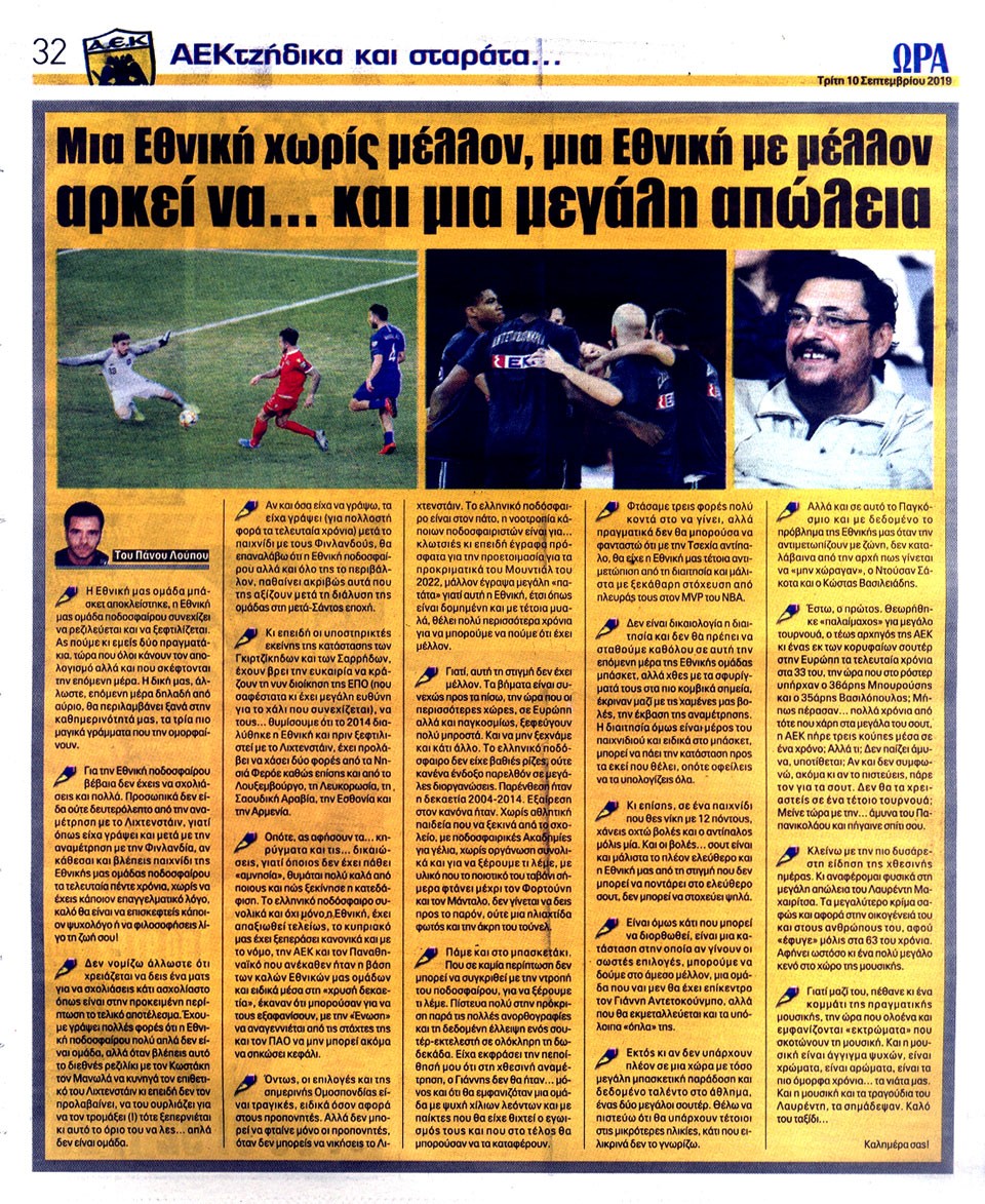 ΑΘΛΗΤΙΚΗ ΩΡΑ ΤΩΝ ΣΠΟΡ - 10 Σεπτεμβρίου 2019