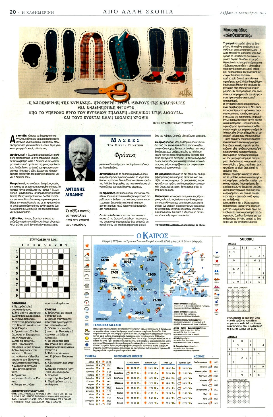 ΚΑΘΗΜΕΡΙΝΗ - 14 Σεπτεμβρίου 2019
