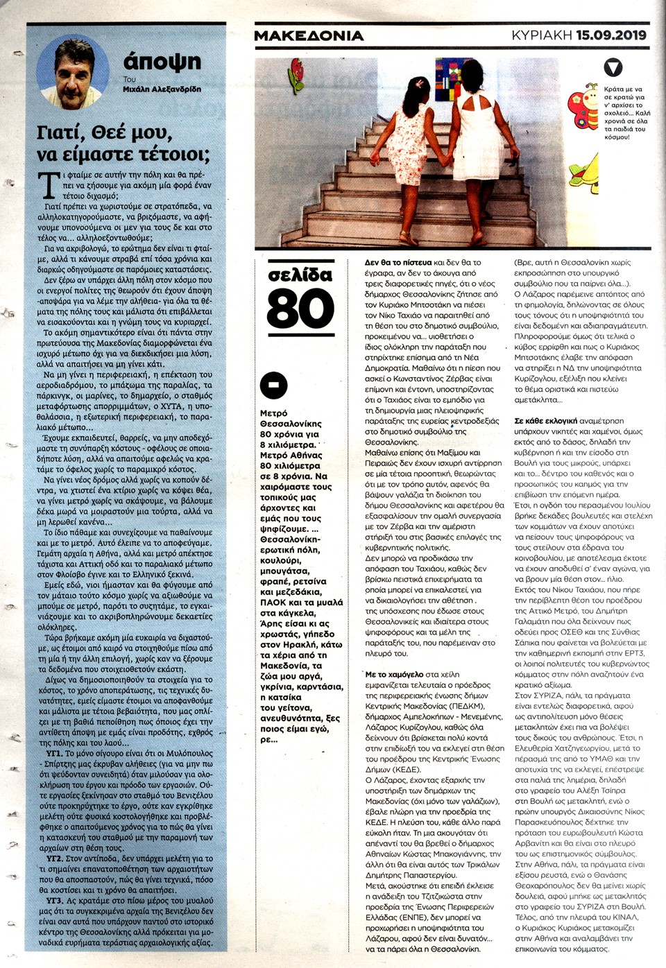 ΜΑΚΕΔΟΝΙΑ ΤΗΣ ΚΥΡΙΑΚΗΣ - 15 Σεπτεμβρίου 2019