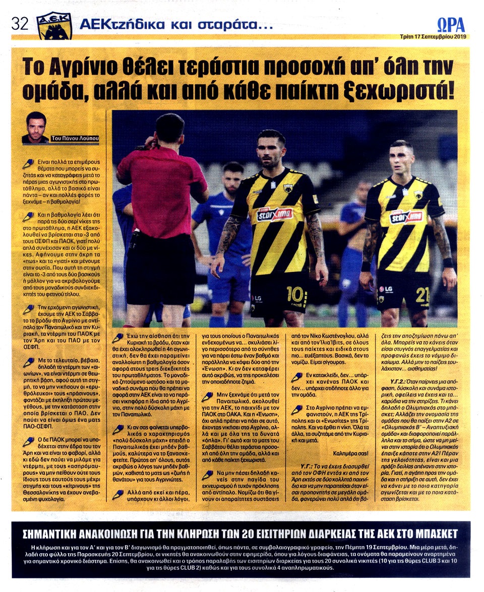 ΑΘΛΗΤΙΚΗ ΩΡΑ ΤΩΝ ΣΠΟΡ - 17 Σεπτεμβρίου 2019