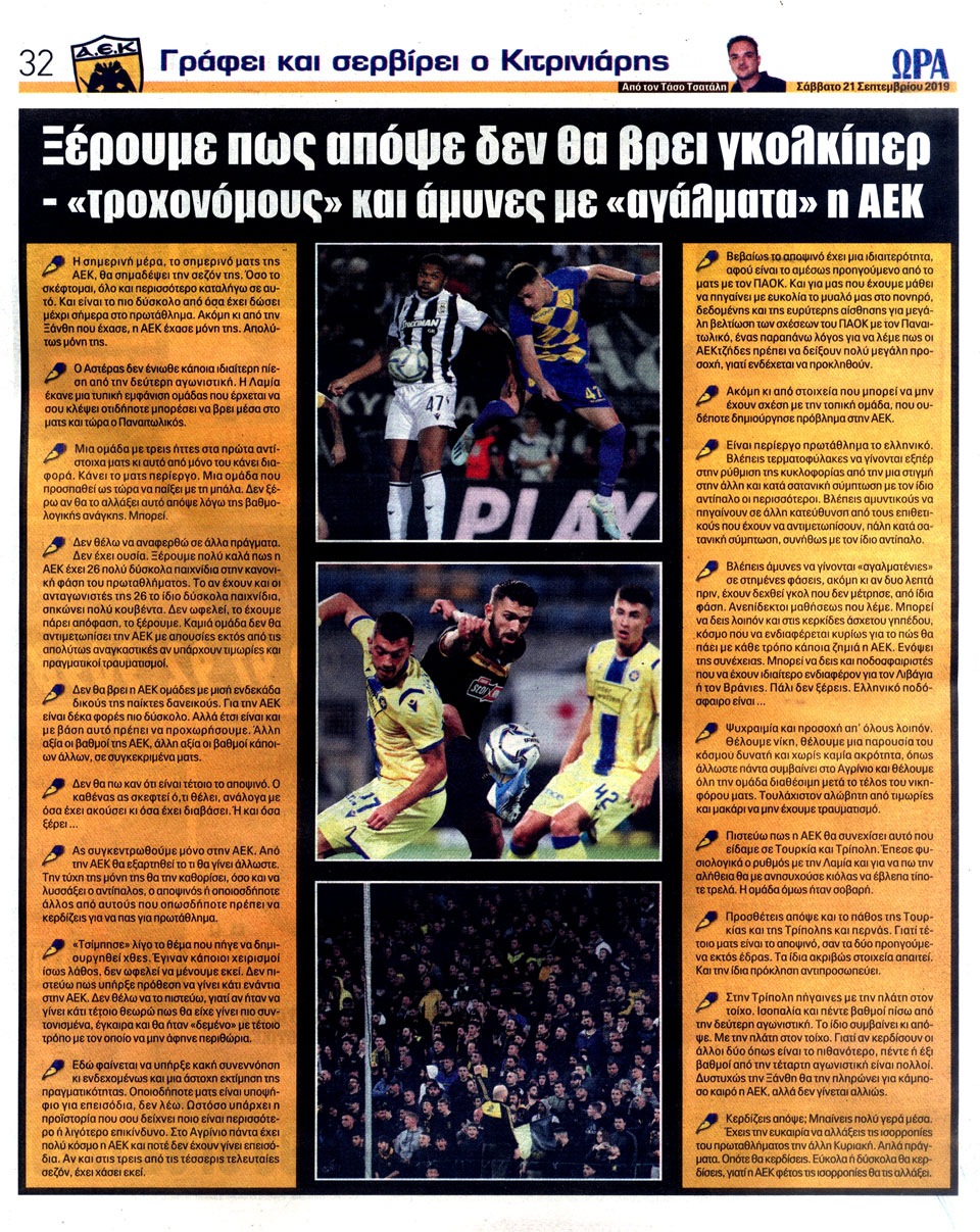 ΑΘΛΗΤΙΚΗ ΩΡΑ ΤΩΝ ΣΠΟΡ - 21 Σεπτεμβρίου 2019