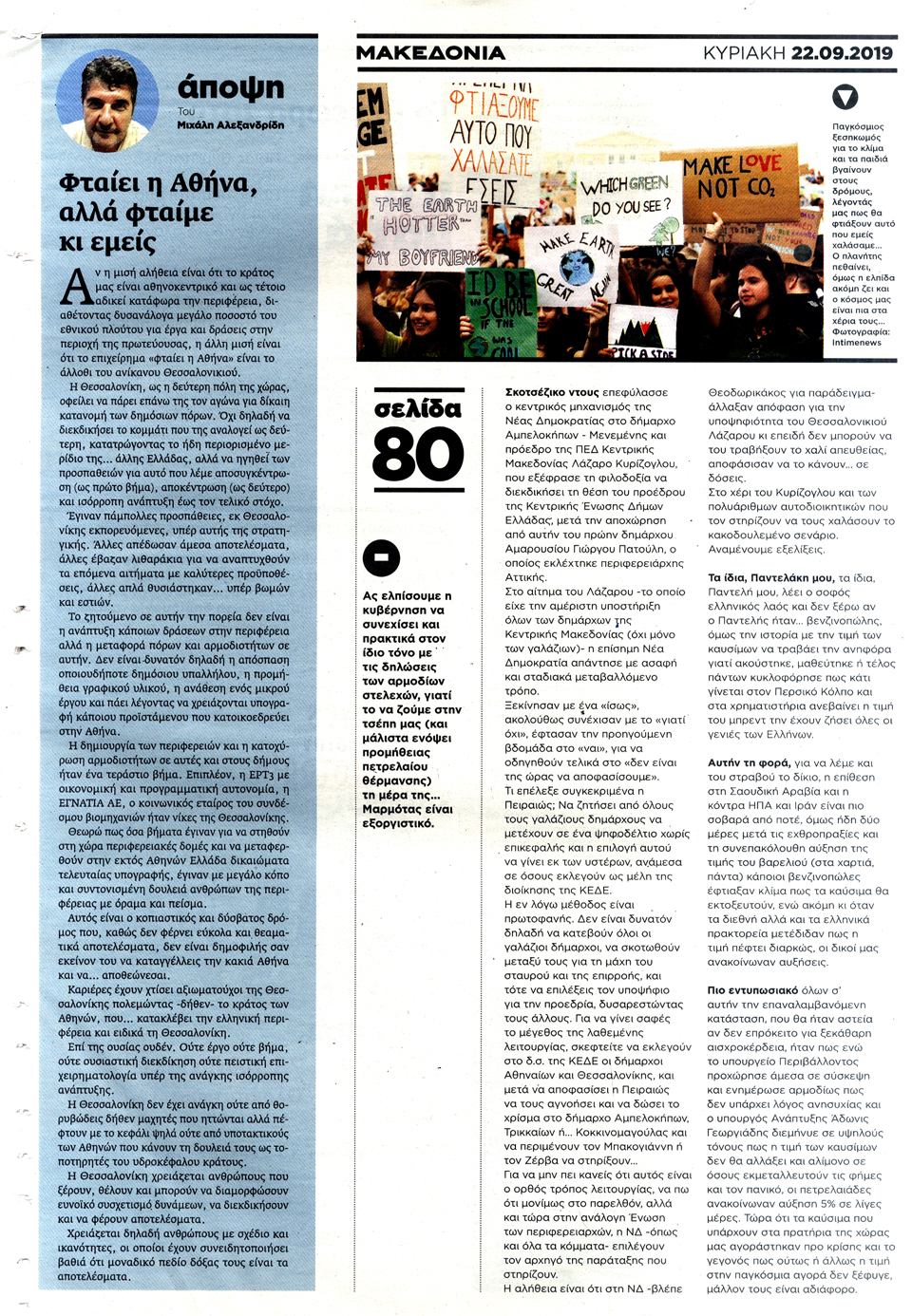 ΜΑΚΕΔΟΝΙΑ ΤΗΣ ΚΥΡΙΑΚΗΣ - 22 Σεπτεμβρίου 2019