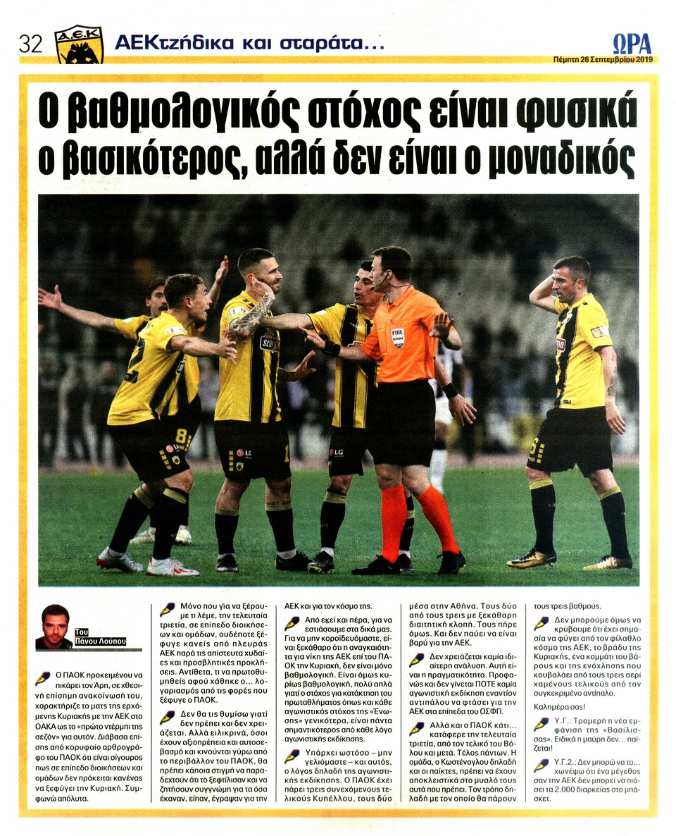 ΑΘΛΗΤΙΚΗ ΩΡΑ ΤΩΝ ΣΠΟΡ - 26 Σεπτεμβρίου 2019