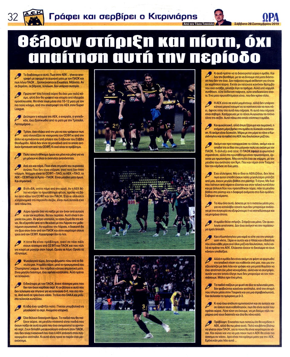 ΑΘΛΗΤΙΚΗ ΩΡΑ ΤΩΝ ΣΠΟΡ - 28 Σεπτεμβρίου 2019