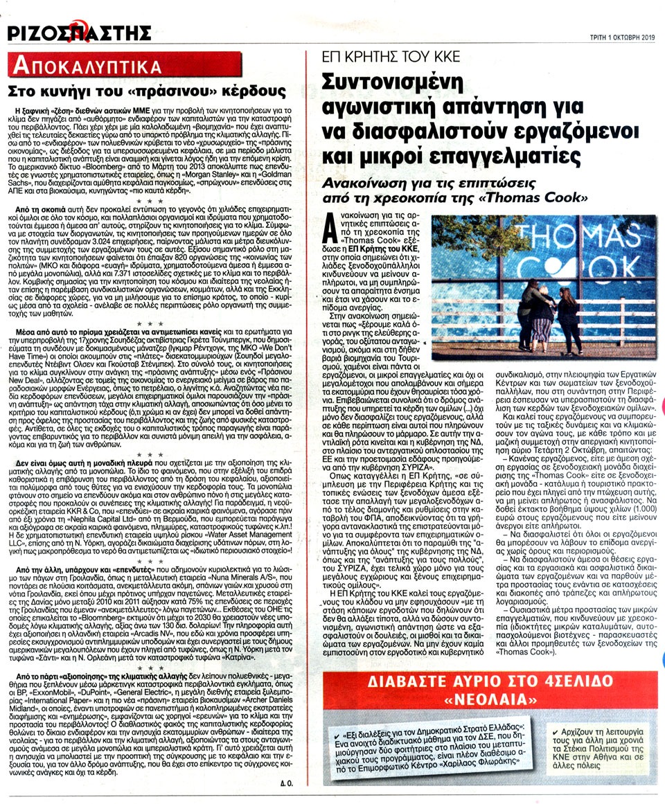 ΡΙΖΟΣΠΑΣΤΗΣ - 1 Οκτωβρίου 2019