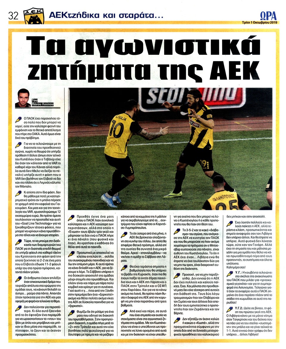 ΑΘΛΗΤΙΚΗ ΩΡΑ ΤΩΝ ΣΠΟΡ - 1 Οκτωβρίου 2019