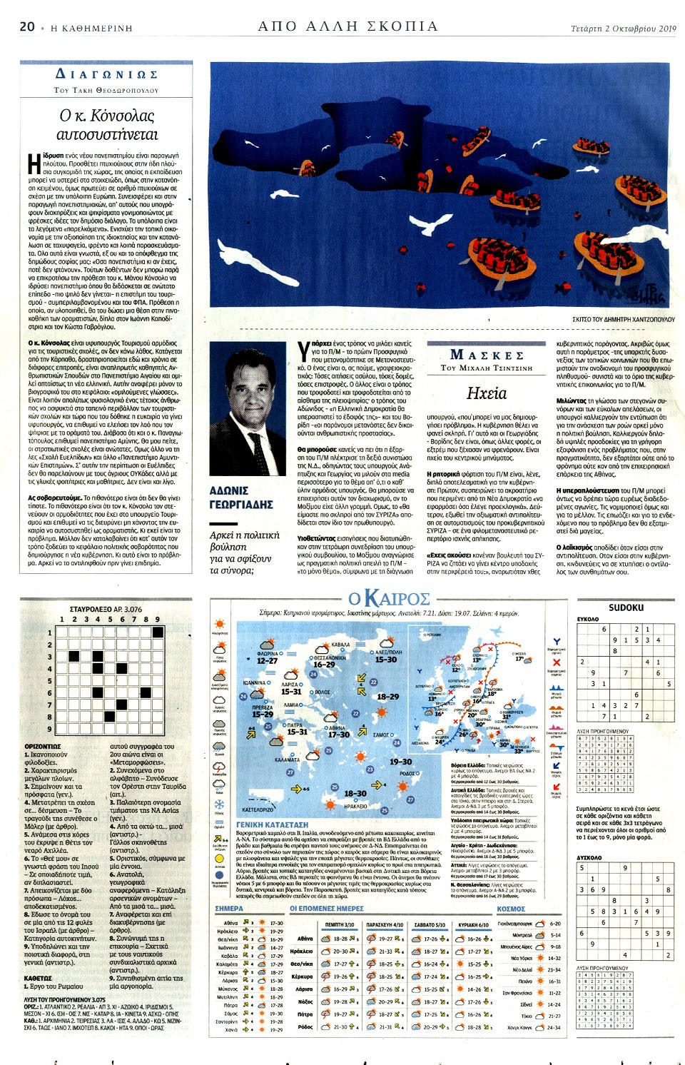 ΚΑΘΗΜΕΡΙΝΗ - 2 Οκτωβρίου 2019
