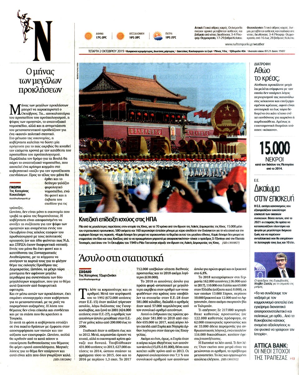ΝΑΥΤΕΜΠΟΡΙΚΗ - 2 Οκτωβρίου 2019