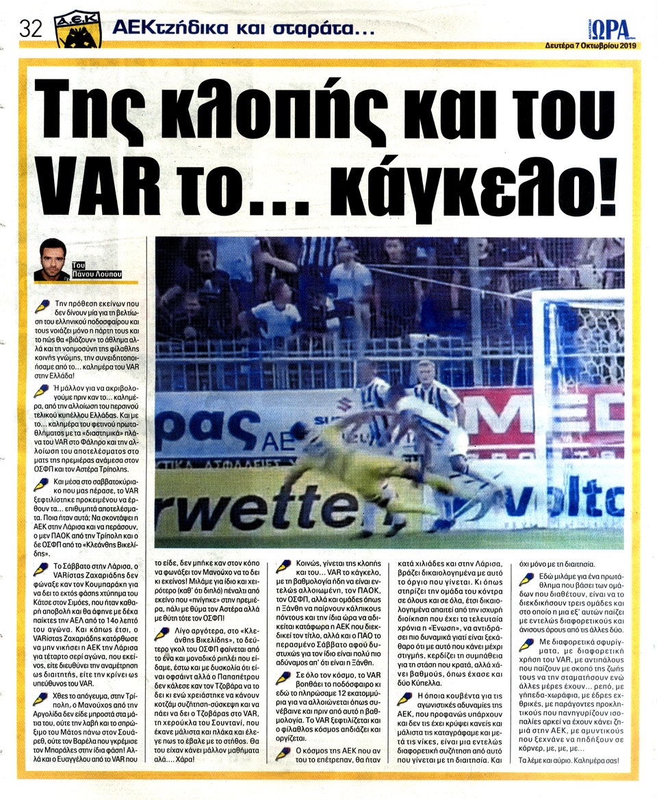 ΑΘΛΗΤΙΚΗ ΩΡΑ ΤΩΝ ΣΠΟΡ - 7 Οκτωβρίου 2019