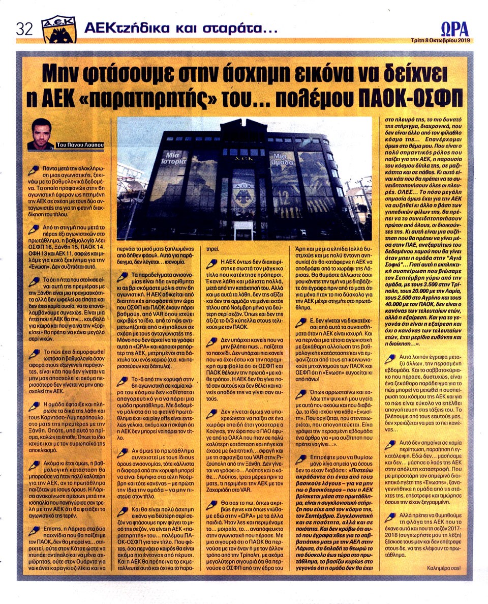 ΑΘΛΗΤΙΚΗ ΩΡΑ ΤΩΝ ΣΠΟΡ - 8 Οκτωβρίου 2019