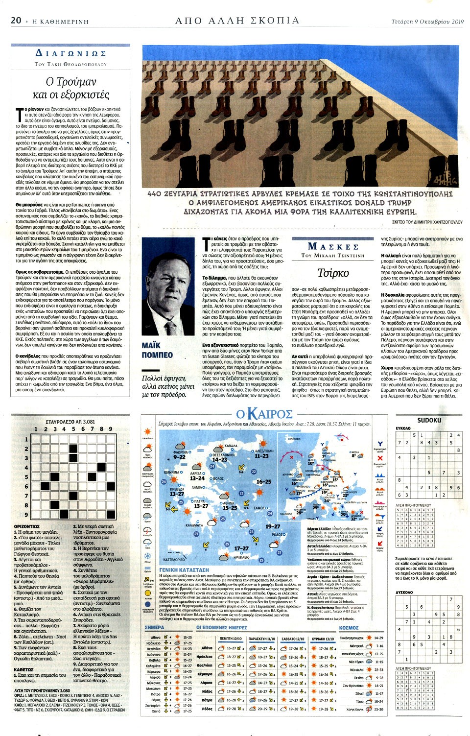 ΚΑΘΗΜΕΡΙΝΗ - 9 Οκτωβρίου 2019