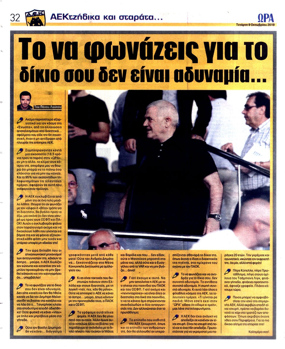 ΑΘΛΗΤΙΚΗ ΩΡΑ ΤΩΝ ΣΠΟΡ - 9 Οκτωβρίου 2019