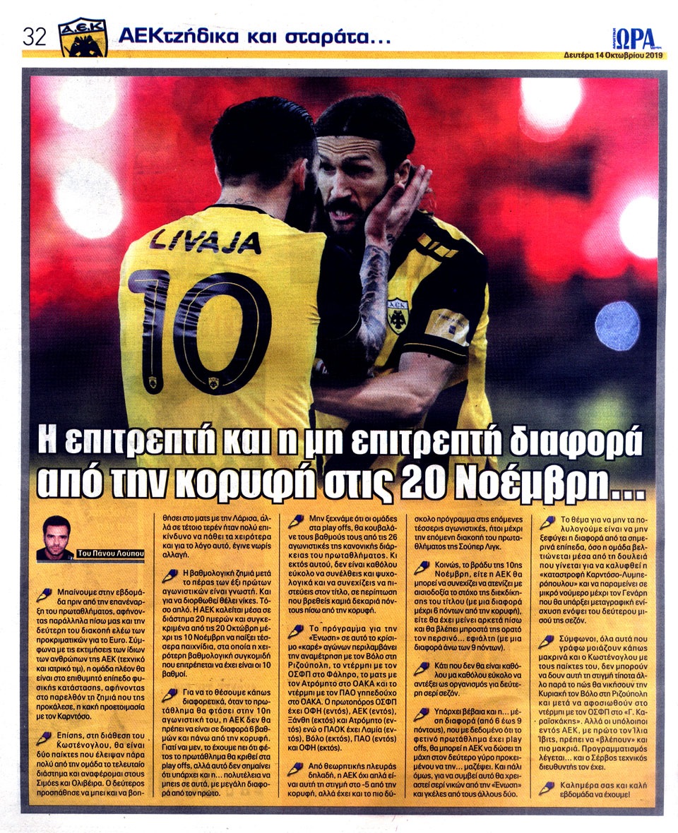 ΑΘΛΗΤΙΚΗ ΩΡΑ ΤΩΝ ΣΠΟΡ - 14 Οκτωβρίου 2019