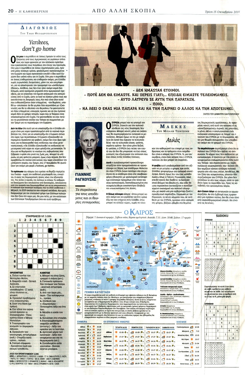 ΚΑΘΗΜΕΡΙΝΗ - 15 Οκτωβρίου 2019