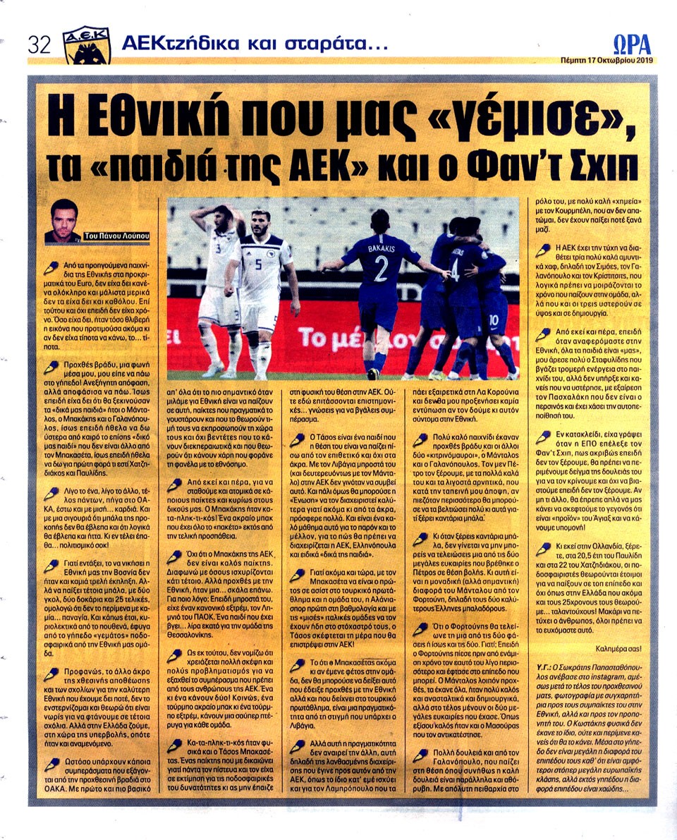 ΑΘΛΗΤΙΚΗ ΩΡΑ ΤΩΝ ΣΠΟΡ - 17 Οκτωβρίου 2019