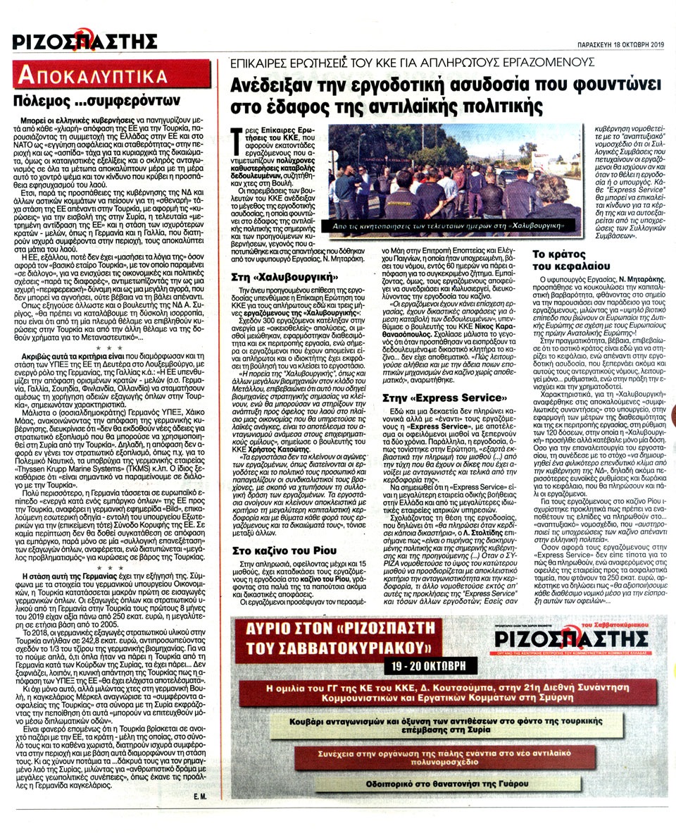 ΡΙΖΟΣΠΑΣΤΗΣ - 18 Οκτωβρίου 2019