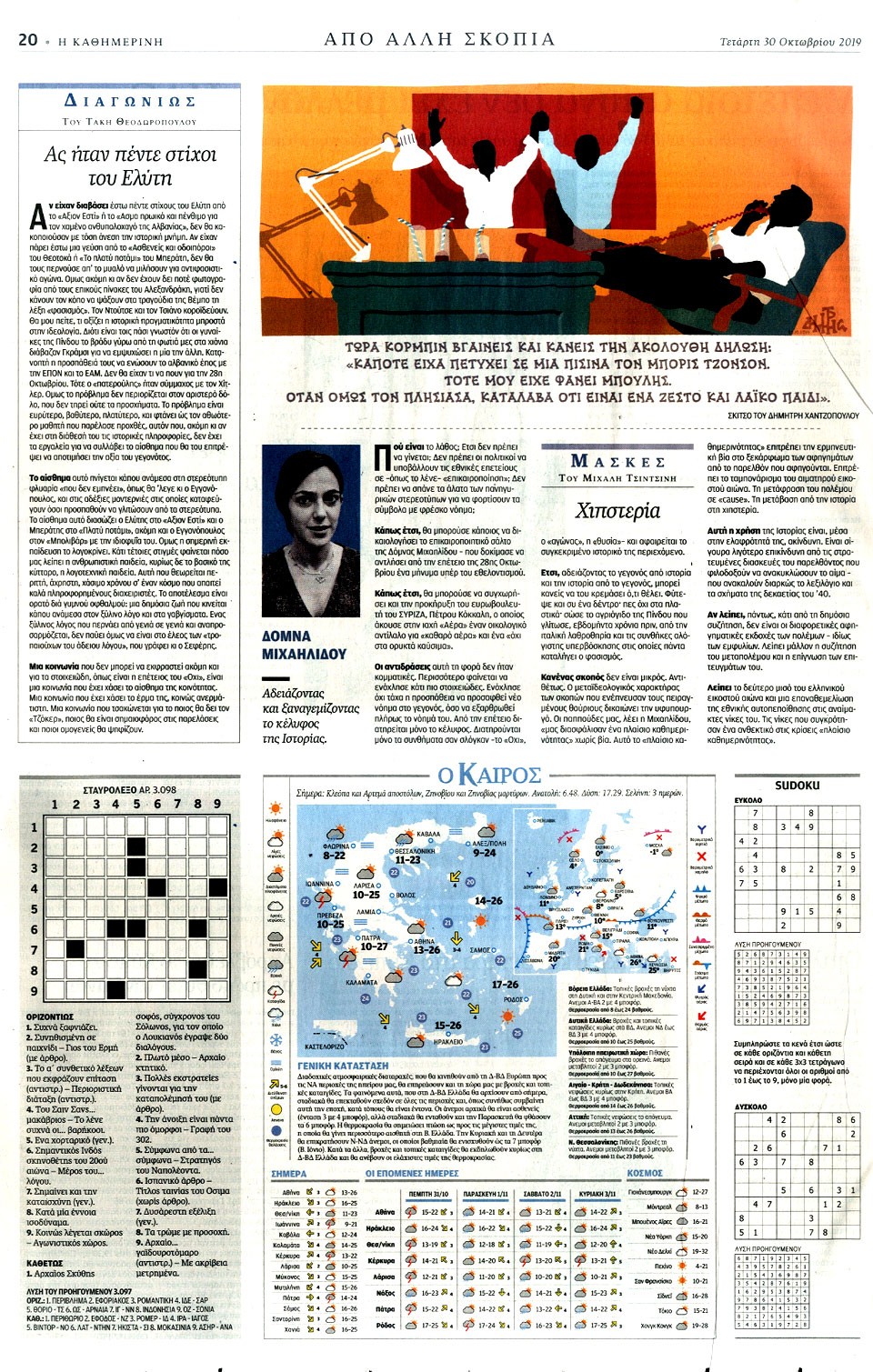 ΚΑΘΗΜΕΡΙΝΗ - 30 Οκτωβρίου 2019