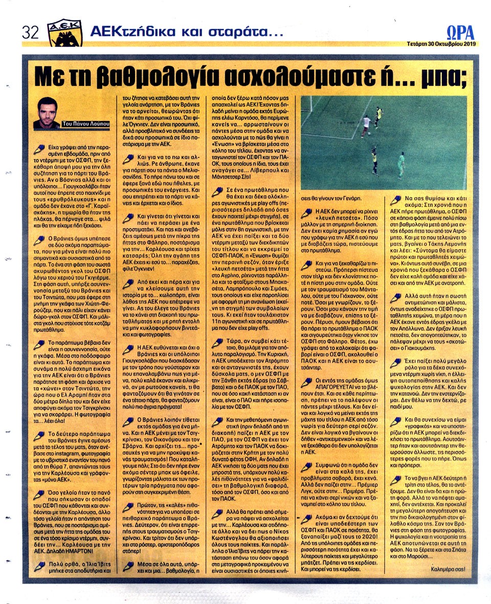 ΑΘΛΗΤΙΚΗ ΩΡΑ ΤΩΝ ΣΠΟΡ - 30 Οκτωβρίου 2019