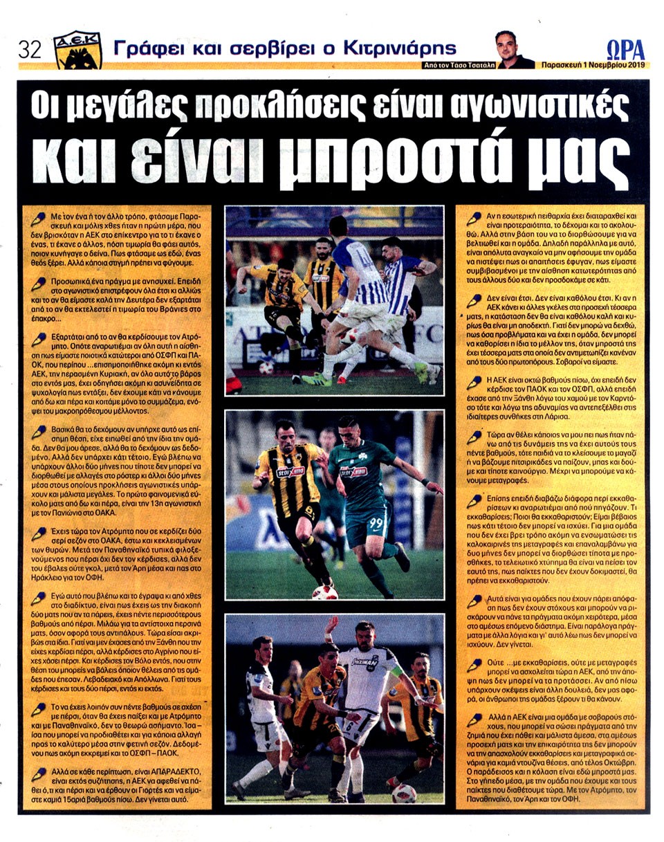 ΑΘΛΗΤΙΚΗ ΩΡΑ ΤΩΝ ΣΠΟΡ - 1 Νοεμβρίου 2019